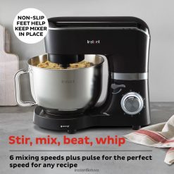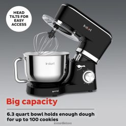 su 400 vatų galia ir 6 maišymo greičiais (plius impulsu), momentinis stovas maišytuvas yra pakankamai galingas, kad galėtų atlikti bet kokį maišymo darbą. dideliame 6,3 litrų maišymo dubenyje su rankena telpa dideli kiekiai, iki 100 sausainių vienoje partijoje. Planetinis maišymas užtikrina tolygų maišymą iki pat dubens krašto, o neslidžios kojelės užtikrina stabilų veikimą. lengva valyti naudojant indaplovėje plaunamą maišymo dubenį, šluotelę, mentelę ir tešlos kabliuką. atsisiųskite vartotojo vadovą