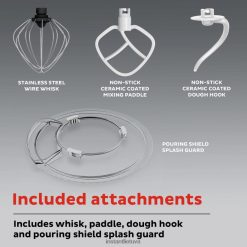 - apima: nelipnią keramika dengtą maišymo mentelę ir tešlos kabliuką, plaktuvą ir nuimamą liejimo skydą