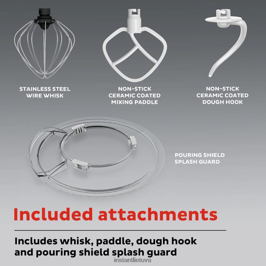 - lengvas valymas: plaunamas indaplovėje nerūdijančio plieno maišymo dubuo, plaktuvas, maišymo mentelė ir tešla kablys