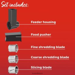 - paprastas naudoti pjaustyklės / smulkintuvo priedų rinkinys, skirtas momentiniam stovinčiam maišytuvui pro