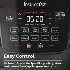 - 7 viename funkcijos: greitas virimas, lėtas virimas, ryžiai, jogurtas, garinimas, troškinimas ir šildymas