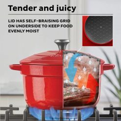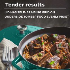 - stalui paruošta elegancija: tvirtas emaliuotas ketaus virimo puodas yra nuimamas, tinka orkaitei ir viryklei ir gražiai atrodo ant jūsų stalo