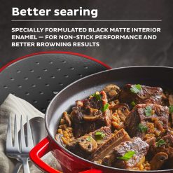 - specialiai sukurtas matinis juodas emalio vidus užtikrina puikų nepridegantį veikimą ir geresni skrudinimo rezultatai.