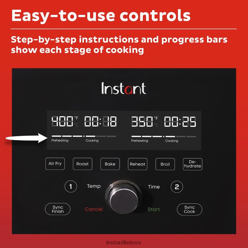 - 8 viename gaminimas: kepkite ore, kepkite, skrudinkite, troškinkite, pašildykite arba išdžiovinkite, sinchronizuokite, sinchronizuokite