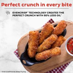 - vieno žingsnio, tolygiai traškūs būgneliai automatiškai, kad būtų traškūs ir švelnūs, naudojant 95 % mažiau aliejaus.